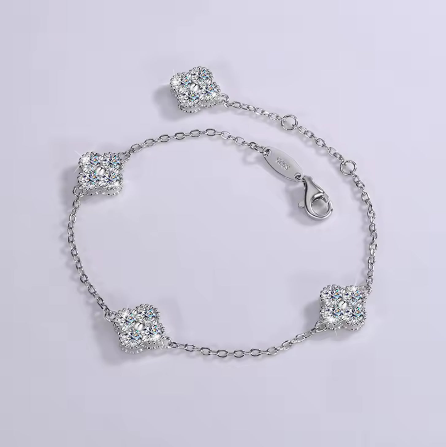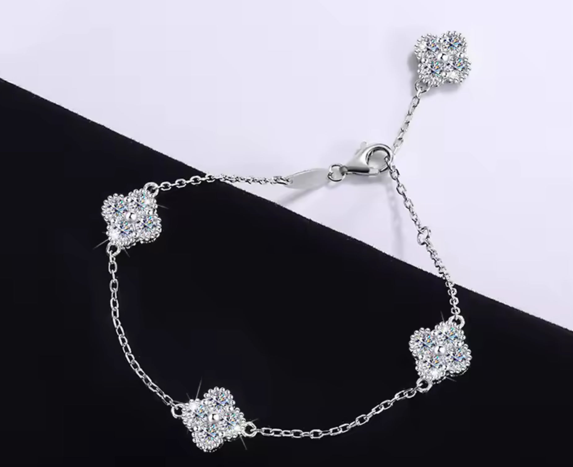 ✨ Luxe Silver Moissanite Clover Bracelet ✨
